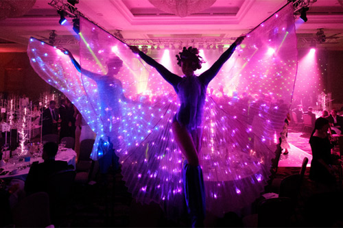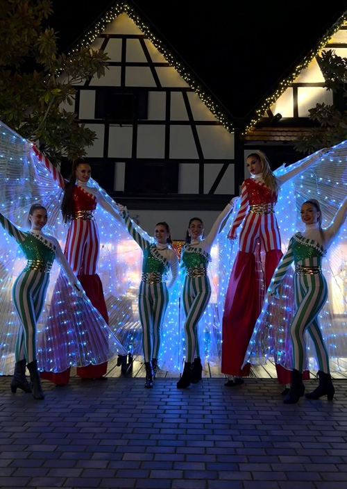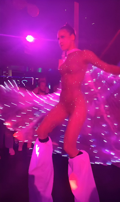Spectacle d’échassière lumineuse à Fribourg : show LED spectaculaire pour animer mariages, anniversaires, soirées et tous vos événements inoubliables.