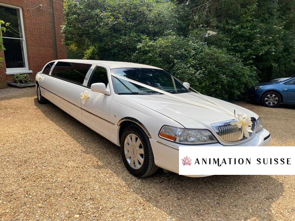 Vous pouvez ajouter des options personnalisées, comme un tapis rouge ou une décoration florale avec couronnes et rubans, parfaites pour un mariage. Par conséquent, chaque trajet devient unique et adapté à vos souhaits. Animation Suisse coordonne tous les détails, de la réservation aux options supplémentaires. Ensuite, nos limousines transportent vos invités dans le confort et le luxe.
